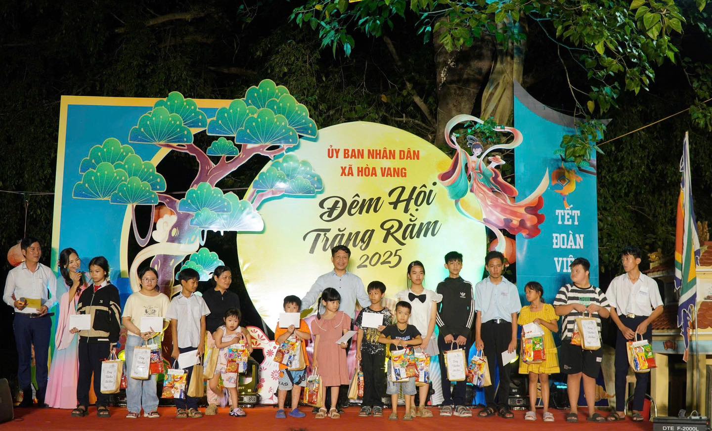 Không chỉ là niềm vui, chương trình còn mang đến sự sẻ chia và đồng hành khi tại đêm hội UBND xã Hòa Vang cũng đã trao tặng 120 suất quà (mỗi suất bao gồm 500 nghìn đồng tiền mặt, lồng đèn và bánh kẹo) cho trẻ em có hoàn cảnh đặc biệt khó khăn trên địa bàn. Những món quà ý nghĩa cùng các hoạt động phong phú đã góp phần mang đến cho các em thiếu nhi một mùa Trung thu trọn vẹn, đồng thời thể hiện sự quan tâm của cấp ủy, chính quyền và cộng đồng đối với thế hệ măng non.