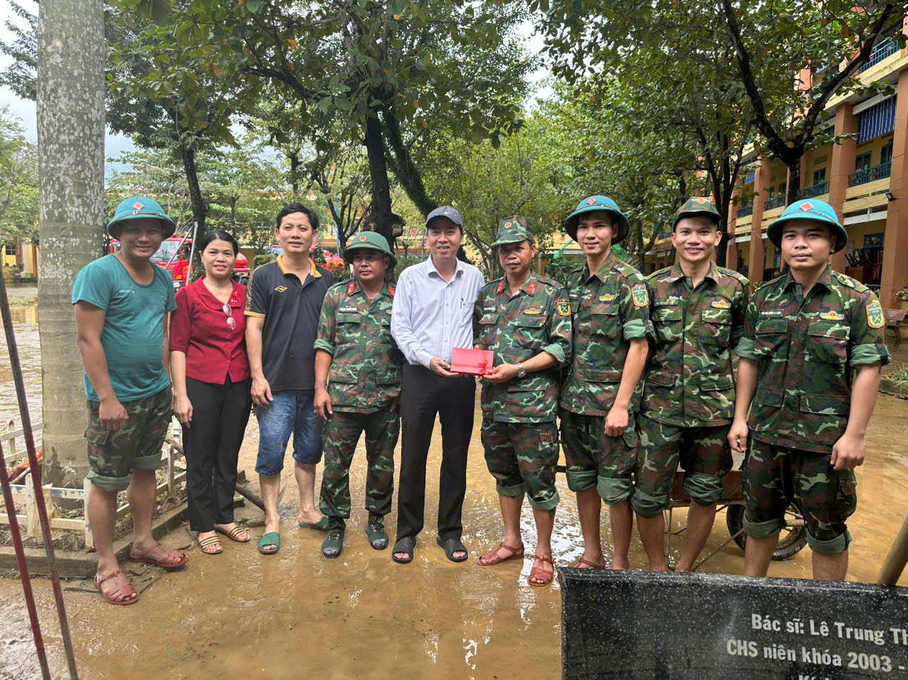 Ngày 31/10/2025, Lãnh đạo Đảng ủy – UBND xã đã đến thăm hỏi, động viên và cảm ơn sự quan tâm hỗ trợ các đơn vị hiệp đồng: Trường Quân sự Quân khu 5, Đoàn Cảnh sát đặc nhiệm số 3 – Bộ công an, Tiểu đoàn Pháo binh 75, Trung Đoàn Bộ binh 971, Vùng 3 Hải quân. Trường Cao đẳng Đại Việt, BCH PTDS khu vực, Đội Cảnh sát PCCC và CNCH khu vực với hơn 500 cán bộ, chiến sĩ tập trung dọn vệ sinh tại các trường học, nhà văn hóa thôn, các di tích đình làng, bia chiến tích bị ngập sâu, bùn đất nhiều, góp phần nhanh chóng ổn định trường lớp, học sinh đến trường và các hoạt động trở lại bình thường tại địa phương.