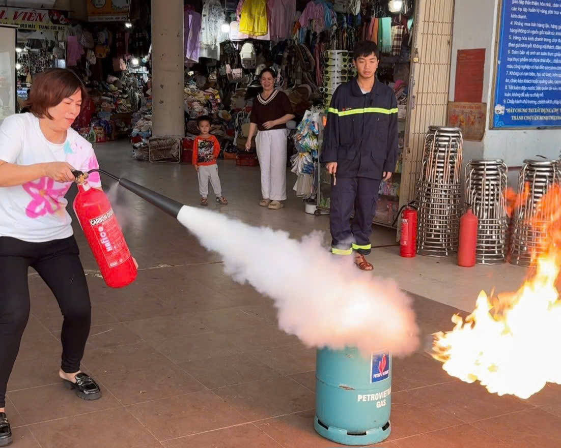 Tại buổi tập huấn, các hộ tiểu thương được phổ biến những nội dung trọng tâm liên quan đến trách nhiệm của hộ kinh doanh và người dân tham gia buôn bán tại chợ trong công tác PCCC & CNCH; qua đó nhấn mạnh yêu cầu chấp hành nghiêm các quy định của pháp luật, nâng cao ý thức tự phòng, tự quản nhằm hạn chế thấp nhất nguy cơ cháy, nổ xảy ra. Song song với đó, lực lượng chức năng phân tích, chỉ rõ một số nguy cơ cháy, nổ thường gặp tại các lô, quầy, sạp kinh doanh như việc sử dụng thiết bị điện không bảo đảm an toàn, sắp xếp hàng hóa dễ cháy, che chắn lối thoát nạn… Trên cơ sở đó, cán bộ PCCC & CNCH đã hướng dẫn cụ thể các biện pháp phòng cháy và phương án xử lý kịp thời khi xảy ra sự cố cháy tại khu nhà lồng chợ, góp phần hạn chế thiệt hại về người và tài sản. Đặc biệt, các tiểu thương còn được hướng dẫn và trực tiếp thực hành một số kỹ năng sử dụng phương tiện chữa cháy ban đầu như bình chữa cháy xách tay, kỹ năng xử lý các tình huống cháy nhỏ mới phát sinh.