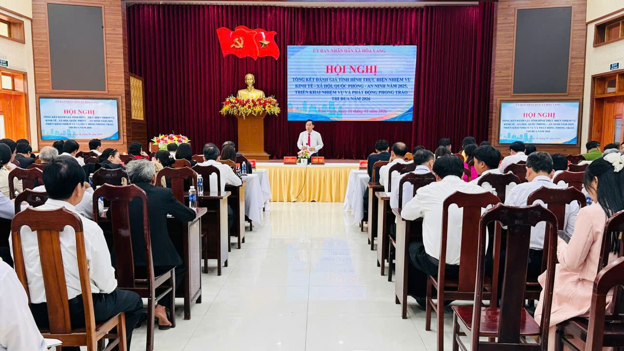 Chiều 16/01/2026, UBND xã Hòa Vang tổ chức Hội nghị tổng kết, đánh giá tình hình thực hiện nhiệm vụ phát triển kinh tế – xã hội, quốc phòng – an ninh năm 2025; đồng thời triển khai nhiệm vụ và phát động phong trào thi đua năm 2026. Hội nghị là dịp để nhìn lại những kết quả quan trọng đạt được trong năm đầu vận hành chính quyền xã mới, tạo tiền đề cho giai đoạn phát triển tiếp theo.