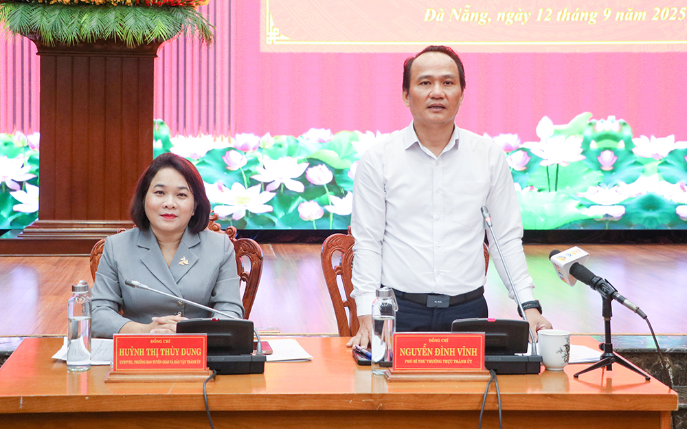Sáng 12-9, Thành ủy Đà Nẵng tổ chức họp báo thông tin về Đại hội đại biểu Đảng bộ thành phố Đà Nẵng lần thứ I, nhiệm kỳ 2025 – 2030. Phó Bí thư Thường trực Thành ủy Nguyễn Đình Vĩnh, Trưởng Ban Tuyên giáo và Dân vận Thành ủy Huỳnh Thị Thùy Dung đồng chủ trì họp báo.