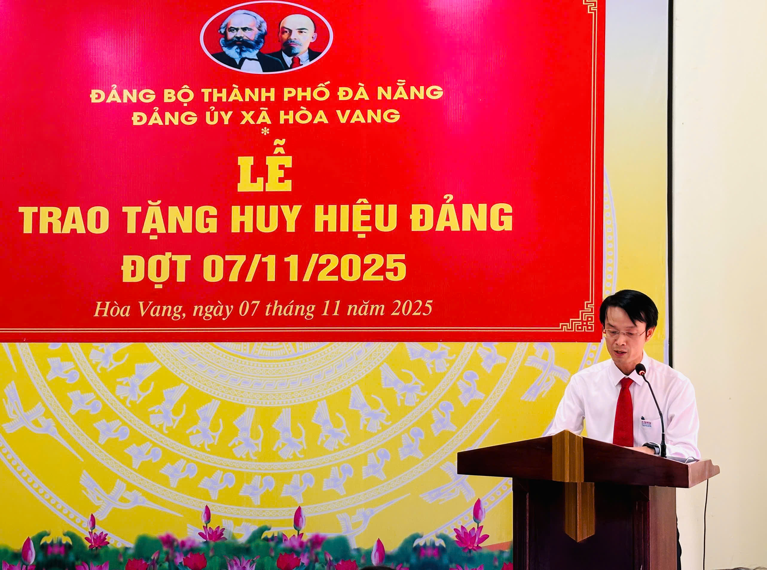 Chiều 7/11, Đảng ủy xã Hòa Vang long trọng tổ chức Lễ trao tặng Huy hiệu Đảng đợt 7/11/2025 cho các đảng viên tiêu biểu, nhân kỷ niệm 108 năm Ngày Cách mạng Tháng Mười Nga (7/11/1917 – 7/11/2025)